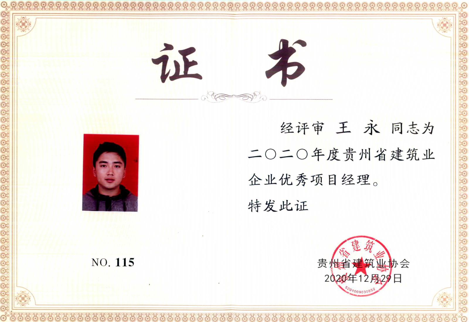 2020年度貴州省建筑業(yè)企業(yè)優(yōu)秀項(xiàng)目經(jīng)理