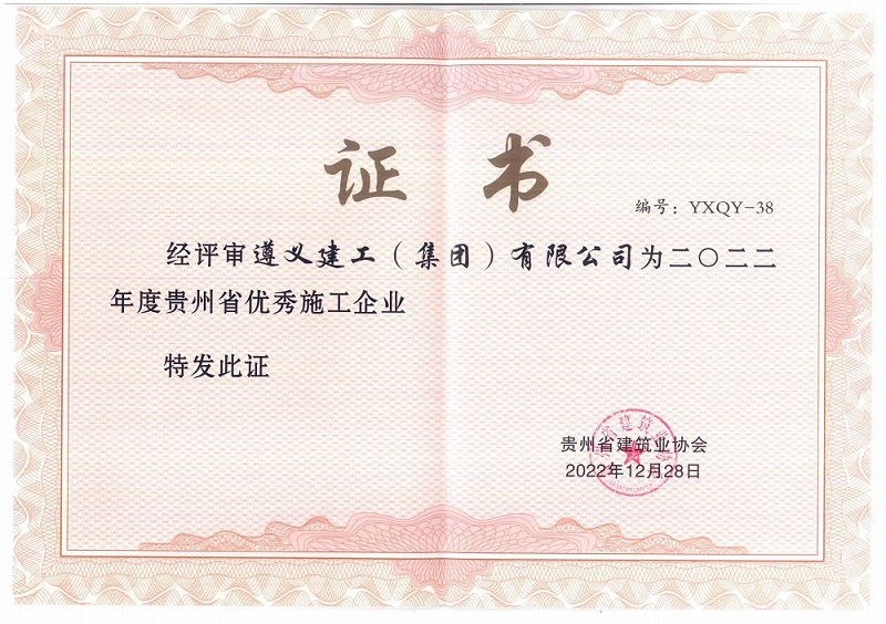 近日,貴州省住建廳、貴州省建筑業(yè)協(xié)會通報了2022年度貴州省優(yōu)秀施工企業(yè)評選結(jié)果,遵義建工(集團)有限公司再次光榮上榜,已連續(xù)十五年獲此榮譽。